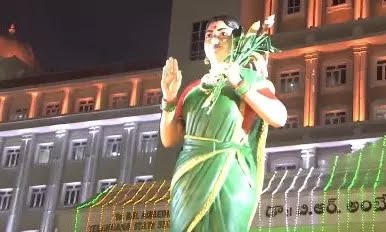 Hyderabad: C. M A Revanth Reddy unveiled the statue of Telangana thalli at the Secretariat here on Monday. Amid chants of vedic hymns, the statue was unveiled in the presence of Deputy Chief Minister Mallu Bhatti Vikramarka and other Ministers and officials.