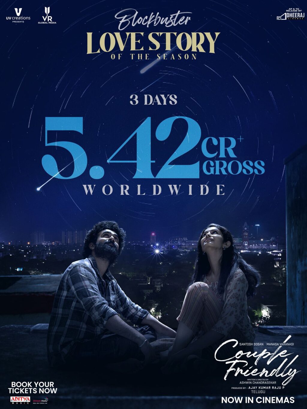 The latest super hit film “Couple Friendly,” starring Santosh Soban and Manasa Varanasi, is racing ahead at the box office with steady collections. This heart-touching love story has grossed ₹5.42 crore worldwide within just three days of its release.