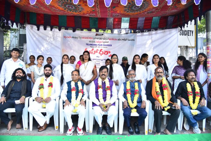 A massive dharna (protest) was organized near the Telugu Film Chamber office under the leadership of the Telangana Film Chamber, opposing the high user charges imposed by digital content providers—Qube, UFO, and PXD—along with the high food prices in cinemas and film piracy. This protest, led by TFCC Chairman Dr. Pratani Ramakrishna Goud, saw participation from producers Lion Sai Venkat, Gururaj, D.S. Reddy, Ravi, actor-hero Sunny, director Siraj, and many other filmmakers and artists.