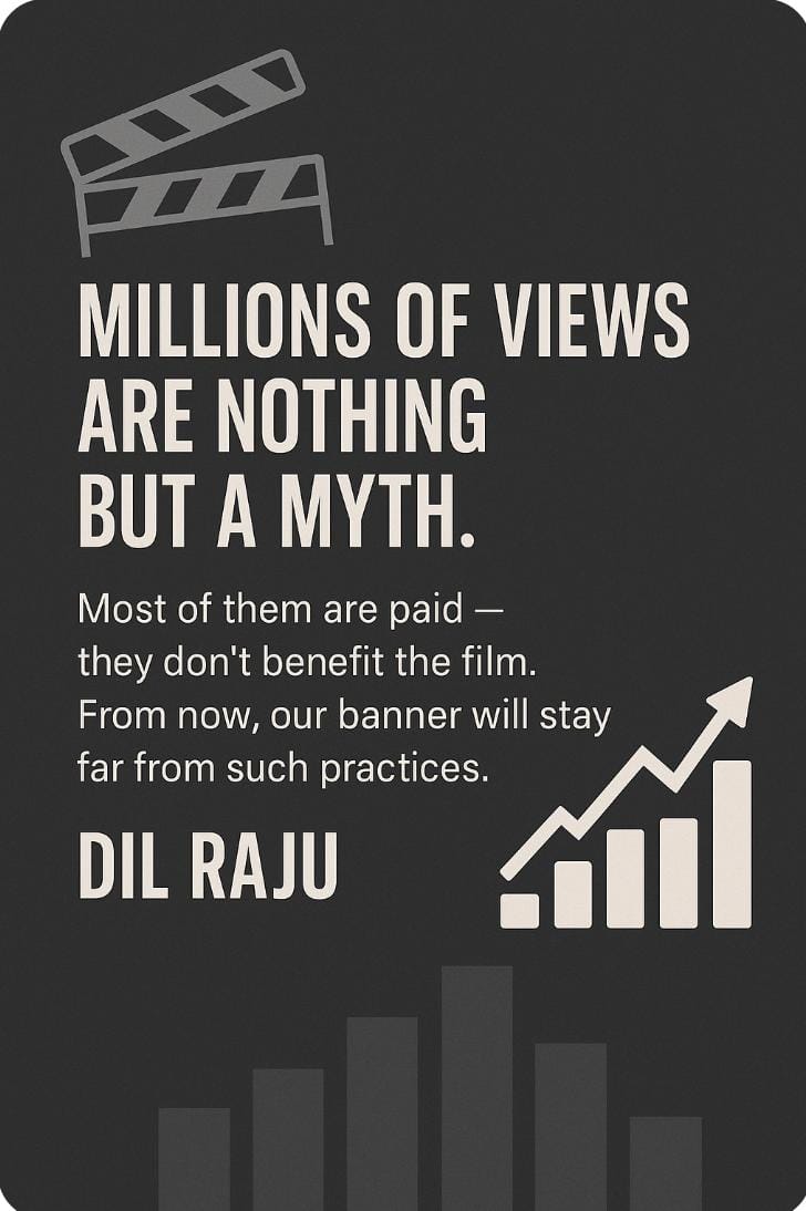 These days, it’s become a trend to release posters boasting “millions of views” just minutes after a teaser or trailer is launched. But what many don’t know is that most of these views are paid – purchased at a fixed rate per thousand. Veteran producer Dil Raju has now openly declared that these views offer no real value and that his production house will no longer be part of such practices.