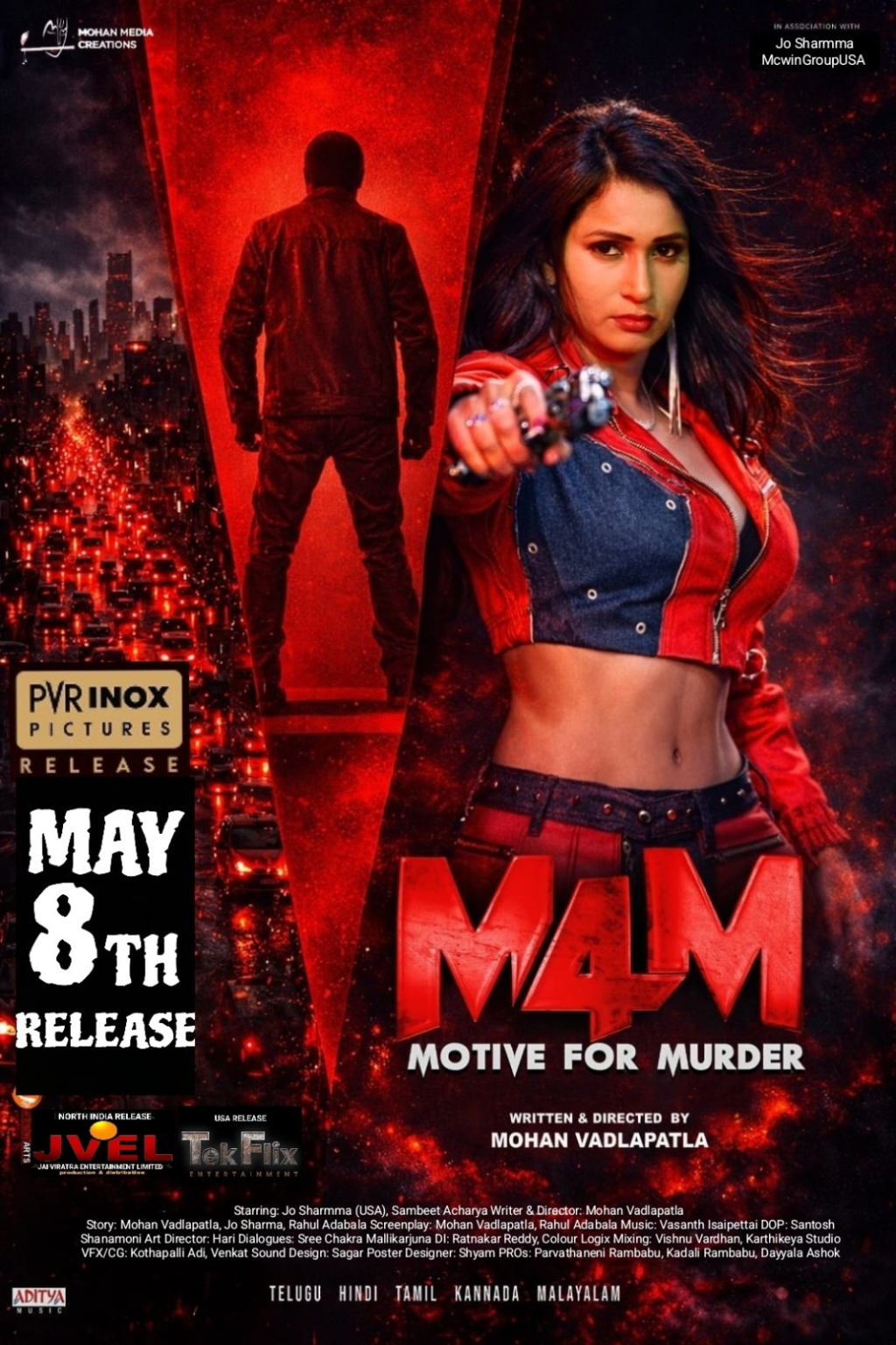 Suspense thriller M4M (Motive for Murder) is gearing up for a grand worldwide theatrical release on May 8th, 2026. Starring popular American actress Jo Sharmma and Sambeet Acharya in the lead roles, the film is directed and produced by Mohan Vadlapatla under the Mohan Media Creations banner in association with McWin Group USA. Powered by PVR Inox Pictures for its India release in five languages — Telugu, Hindi, Tamil, Kannada, and Malayalam — M4M is positioned as a gripping murder mystery thriller with strong pan-India appeal. The USA release will be handled by TekFlix Entertainment, while JVEL Entertainment will oversee the North India release.