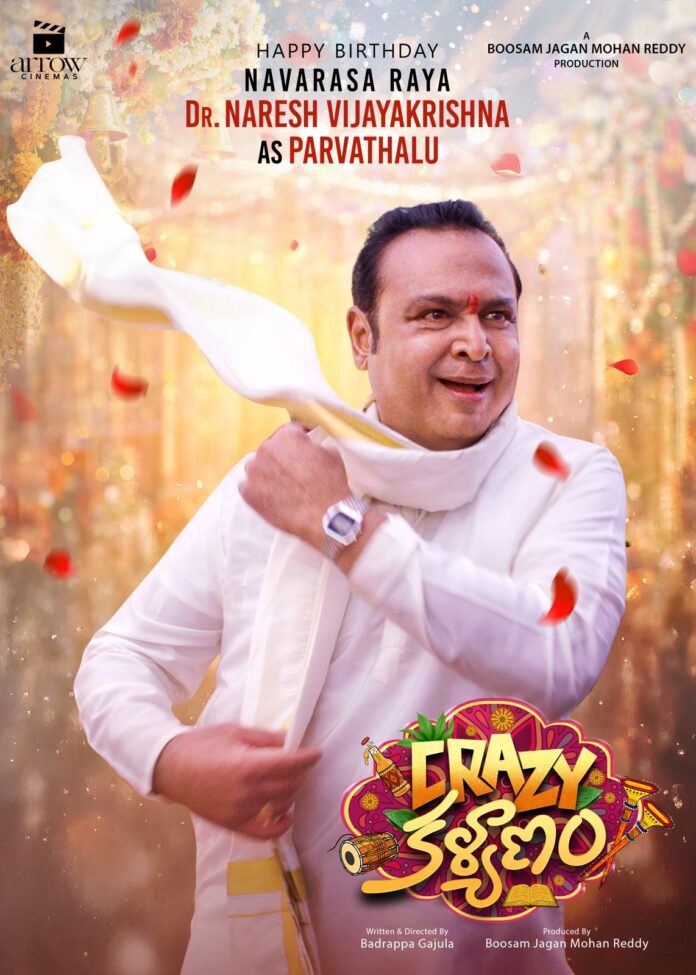 On the occasion of versatile actor Naresh VK’s birthday today, the makers released a special poster wishing him a happy birthday. In the poster, Naresh VK looks impressive in a traditional avatar as the character Parvataalu. The film is said to be a complete entertainer with an engaging story that revolves around a wedding. The shooting of Crazy Kalyanam was carried out across several rural locations in Telangana. Suresh Bobbili is providing the music for this film as well.
